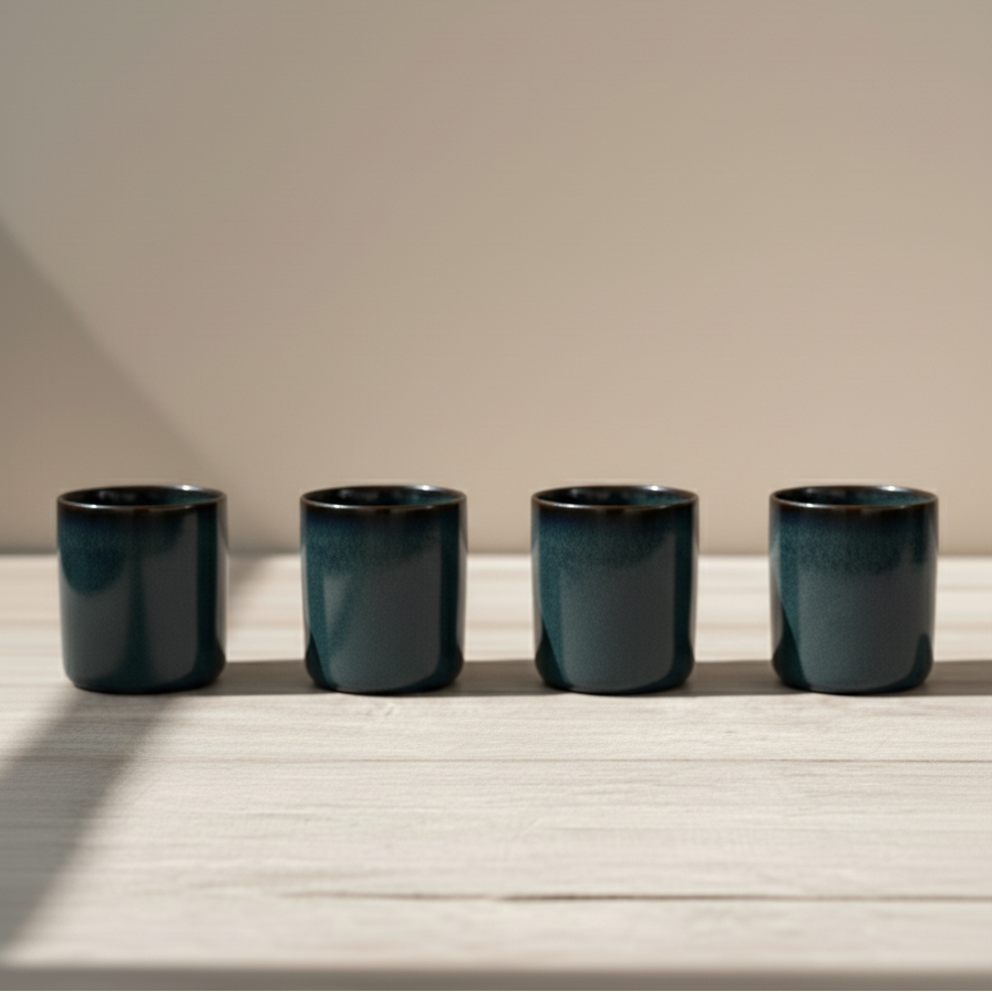 The Anand Ceramic Glass Set is a beautifully crafted collection of four glasses that merge functionality with artistic charm. Featuring a rich mixed hues of sage green & blue with a touch of brown shade glaze design, these glasses bring a touch of elegance to any occasion. Perfect for serving water, juice, or even decorative uses, the Anand set adds sophistication to both casual and formal settings.