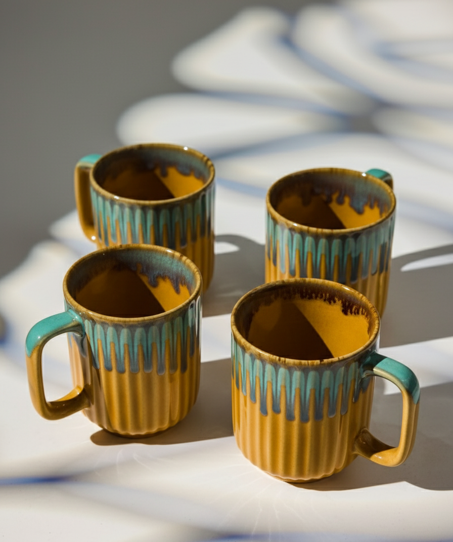 - Sneh Cups – hand-glazed ceramic cups in two calming hues, Mustard and Sage. The form is both minimal and comforting, making them perfect for chai, coffee, or evening brews.